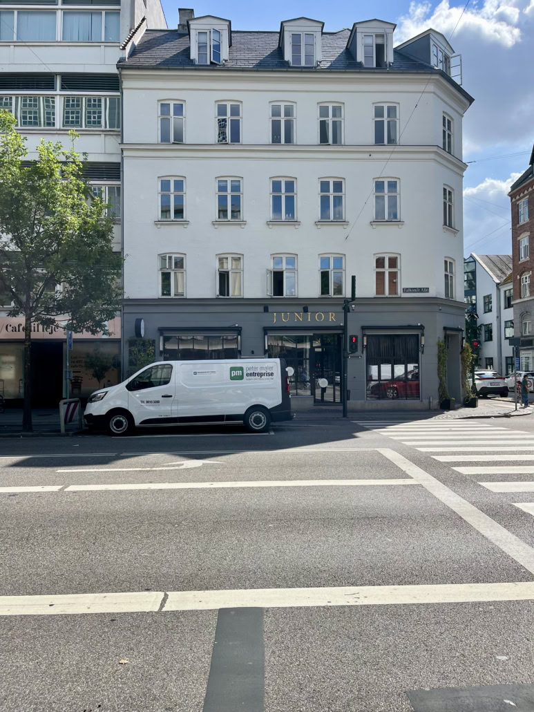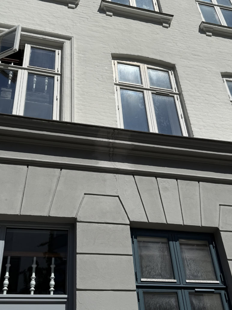 Det er med stor fornøjelse, at vi endnu engang har arbejdet for A/B Tre Falke – en kunde vi har haft æren af at samarbejde med gennem mange år. Vi har udbedret en masse sætningsrevner og denne gang er det vores erfarne malersvende Hamid og Mie, der har stået for malerbehandling af hele facaden med Keim Silikatmaling samt malerbehandling af vinduer og døre. En opgave løst med stor faglighed, omhu og sans for detaljen – udført fra rullestillads midt i byen. Vi sætter en ære i at levere kvalitet – hver gang.